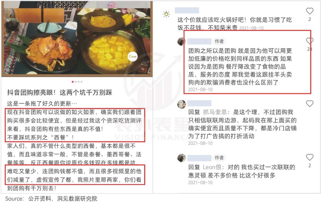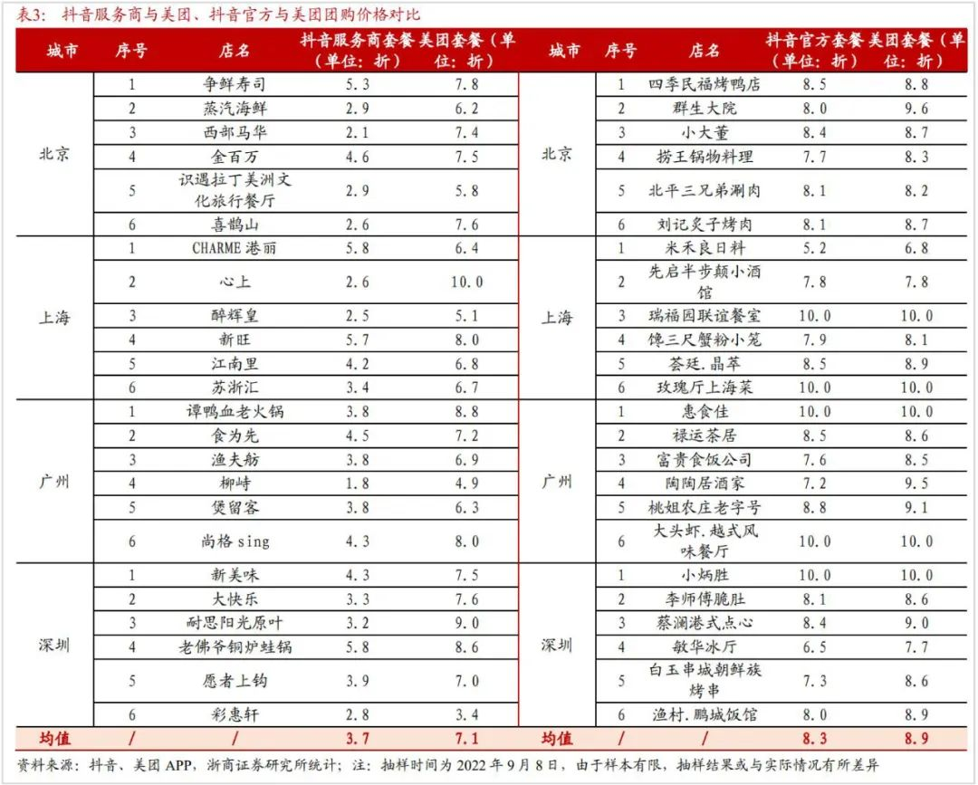 美团搭建起了深厚的商家运营体系以及评价系统,用户做决策依靠历史评价。抖音的评价体系仍处于建设当中,针对住宿、游玩这类高客单价、低频率的消费, 用户做决策更加谨慎些,这对抖音在部分品类的渗透速度造成了限制。